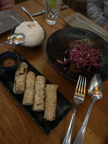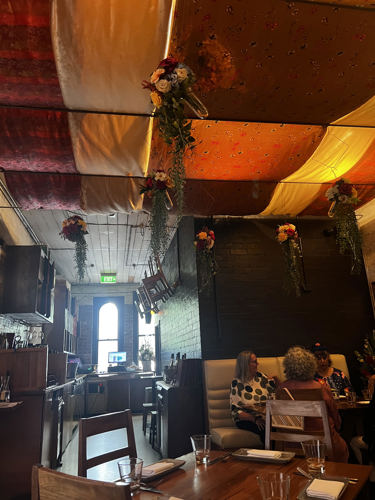 But before we shook our flares and glittery tops, we enjoyed an Asian fusion lunch at The Seamstress in Lonsdale Street. This former stitching warehouse is now a fabulous restaurant with lots of clothing and fabric memorabilia to take in - most of which are hanging from the ceiling!